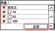 清除要隐藏的纸张尺寸的复选框,然后按 [应用]。
