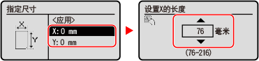 3 | 在 [Y] 中输入值,方法与在 [X] 中输入值一样。 注册常用非标准纸张尺寸后,注册的尺寸将显示为纸张尺寸。注册非标准尺寸纸张(自定义纸张) |