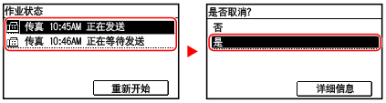 如果显示作业列表画面,请选择要取消的作业,然后按 [是]。