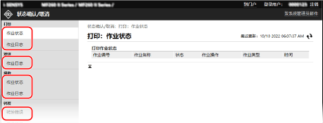 使用系统管理员模式登录远程用户界面时,将显示所有打印作业的状态。