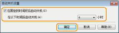 勾选此复选框,打印机将在 [在以下时间后自动关机] 中指定的时间后自动关机。