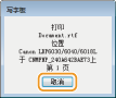 ![]() 如显示上方所示画面,可单击 [取消] 取消打印作业。如画面消失或未显示,您可以通过其他方法取消打印。取消打印作业