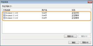 通过远程用户界面查看 (LBP6018w+ / LBP6018w)您可以在远程用户界面的 [作业状态] 页面上查看打印状态。查看打印文档的当前状态