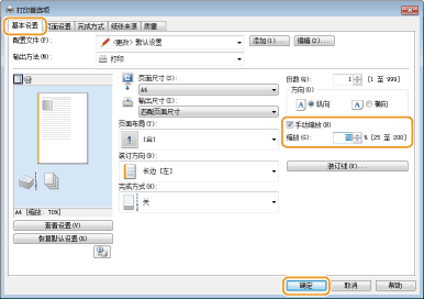 可以使用A5至A4等预设打印倍率或者使用以 1% 为增量设置的自定义打印倍率放大或缩小打印件。