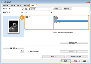 可以指定文档类型以确保最佳图像质量。可为照片文档、有图表或图形的文档以及由精细线条描绘成的设计图纸文档选择不同设置。