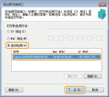 ![]() 只有从用户软件 CD-ROM/DVD-ROM 安装打印机驱动程序或者从佳能网站下载并安装打印机驱动程序,才能添加 MFNP 端口。