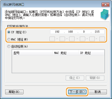 单击 [刷新]。如果问题仍然存在,请单击 [IP 地址] 或 [MAC 地址],输入本机的 IP 地址或 MAC 地址(查看网络设置),然后单击 [下一步]。