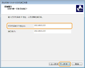 这是标准 Windows 端口。如果使用这种类型的端口,则每次更改本机的 IP 地址需要添加新端口。在 IPv6 环境下使用本机和无法添加 MFNP 端口时选择这种类型的端口。