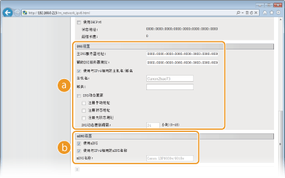 选择此复选框将使用与 IPv4 相同的设置。IPv4 中使用的 mDNS 名称将在打印机重启后自动设置。如想使用不同于 IPv4 的其他设置,请取消勾选该复选框,然后在 [mDNS名称:] 中输入相应的名称。 |
