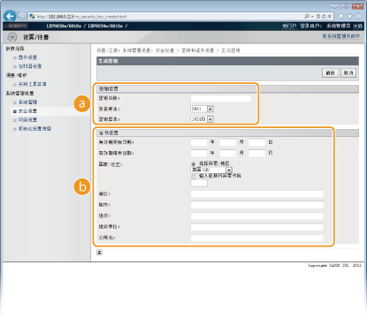 如果 [签名算法:] 选择 [SHA384] 或 [SHA512],密钥长度将无法选择 [512位]。