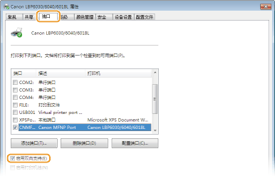 在 [端口] 选项卡中,检查是否已勾选 [启用双向支持] 复选框。