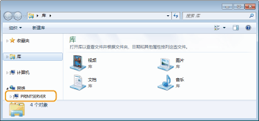 从 [网络] 或 [网上邻居] 选择打印服务器。