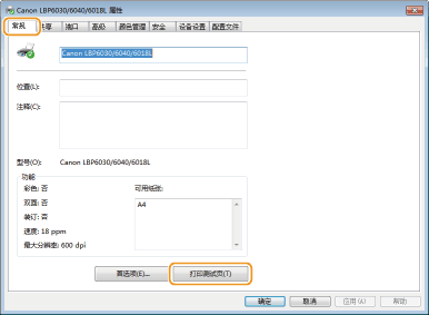 在 [常规] 选项卡中,单击 [打印测试页]。