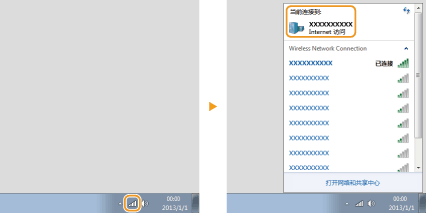 如果计算机连接无线局域网网络,单击系统托盘中的