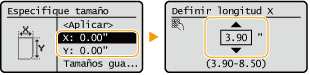 | Seleccione <X> o <Y> para especificar la longitud de cada cara mediante las teclas numéricas o  /  . |