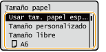 Si necesita cambiar frecuentemente el papel que se va a cargar, ajuste en <Tamaño libre>; esto reducirá el número de pasos necesarios para cambiar el ajuste. También puede visualizar un mensaje de error cuando la configuración del controlador de la impresora sea significativamente diferente al tamaño del papel cargado.