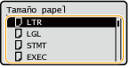 Si el tamaño/tipo de papel que se muestra es distinto al tamaño/tipo de papel que está cargado, seleccione <Opciones de papel> y el origen de papel donde ha cargado el papel.