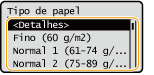 Para verificar as definições detalhadas de um tipo de papel, selecione <Detalhes>