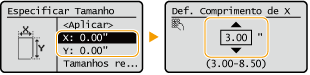 | Selecione <X> ou <Y> para especificar o comprimento de cada lado usando teclas numéricas ou  /  . |