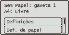Ao abrir a gaveta de papel, as definições atuais do papel são exibidas no topo da tela.