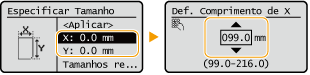 | Selecione <X> ou <Y> para especificar o comprimento de cada lado usando teclas numéricas ou  /  . |