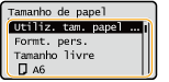 Se você precisa mudar o papel a ser carregado, defina para <Tamanho livre>; isso reduzirá o número de etapas necessárias para mudar a definição a cada vez. Você também pode exibir uma mensagem de erro quando a definição no driver da impressora for muito diferente do tamanho de papel carregado.