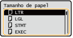 Especifique o tamanho do papel carregado na gaveta de papel.