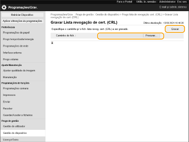 Clique em [Procurar...], especifique o arquivo (CRL) que será registrado e clique em [Gravar].