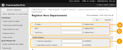 Para informações sobre o número de IDs de departamento que podem ser registradas, consulte Funções de Gerenciamento. |