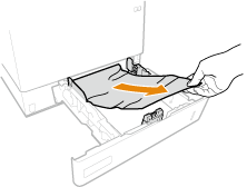 Remova o papel atolado nas gavetas para papel 3 e 4 com o mesmo procedimento usando na gaveta para papel 2. |