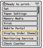 (Home). The <Home> screen or settings screen appears on the display, allowing you to initiate functions such as <Memory Media> and <Mobile Portal>. You can also use the display to check information such as error messages and the machine's operation status.