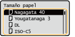 Aparece la pantalla para especificar el tamaño y el tipo de papel.