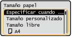 Si necesita cambiar frecuentemente el papel que se va a cargar, ajuste en <Tamaño libre>; esto reducirá el número de pasos necesarios para cambiar el ajuste. También puede visualizar un mensaje de error cuando la configuración del controlador de la impresora sea significativamente diferente al tamaño del papel cargado.