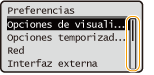 Puede cambiar una variedad de opciones relacionadas con la pantalla, como por ejemplo el idioma de la pantalla: <Opciones de visualización>