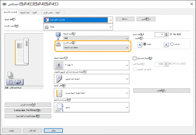 إعدادات إدارة نوع الورق