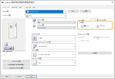 اتبع الإجراء الموضح أدناه للتحقق من إعدادات الطباعة.