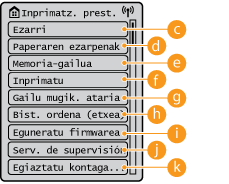 Makinan gordetako dokumentuak inprima ditzakezu eta inprimatutako lanen egoera egiazta dezakezu.