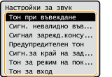 <Сигн. невалидно въвежд.> | Звук, който се възпроизвежда при извършване на невалидна операция с бутон или при въвеждане на номер, който е извън валидния диапазон на настройката |