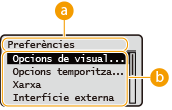 Els elements de configuració que pertanyen al nivell de menú actual es mostren en una llista.