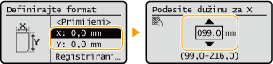 Odaberite <X> ili <Y> kako biste putem numeričkih tipki ili  /  unijeli duljinu svake stranice.