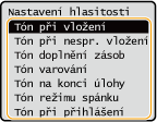Tón se ozve, když stroj přechází do režimu spánku, nebo také když se stroj vypne, pokud nastavíte <Nast. rychlého spuštění pro hl. napájení> na <Zap>. (V určitých situacích se může stát, že se stroj rychle nespustí a tón nezazní.)