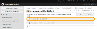 Informace o číslech ID oddělení, která můžete registrovat, naleznete v kapitole Funkce správy.