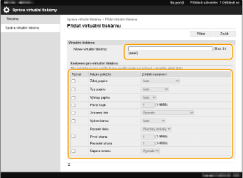 Uložit lze maximálně 20 virtuálních tiskáren.