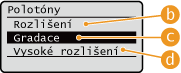 Metodu lze nastavit pro každý typ obrazu v jednom dokumentu. Vyberte typ obrazu pomocí  /   vyberte metodu reprodukce polotónů.