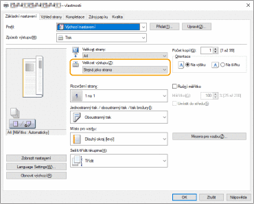 Nastavte [Velikost výstupu] v ovladači tiskárny podle velikosti papíru, na který chcete tisknout.