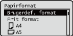 Skærmbilledet til angivelse af papirformatet og -typen vises.