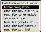 Der genereres lyd, når der udføres en ugyldig tastfunktion, eller når du indtaster et tal, der ligger uden for det gyldige indstillingsområde