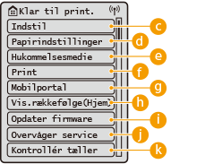 <Funktionsindstillinger>, <Præferencer> og mange andre maskinindstillinger begynder fra denne knap.