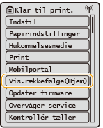 Vælg <Vis.rækkefølge(Hjem)> for at brugertilpasse skærmen <Hjem> ved at flytte rundt på knapperne. Brugertilpasning af skærmen