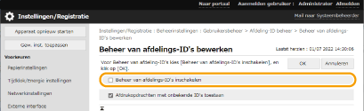 Selecteer [Beheer van afdelings-ID's inschakelen].